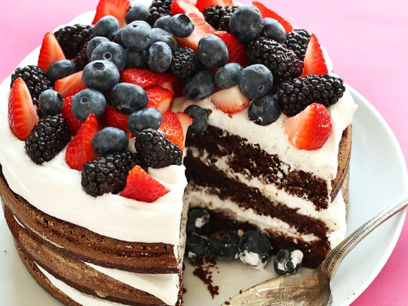 A decadent three-layer vegan chocolate cake made with almond meal, gluten-free flour blend, and cocoa powder, bound together with flax eggs and topped with lightly sweetened coconut whipped cream and fresh berries. This dairy-free, egg-free version delivers rich chocolate flavor and moist crumb through applesauce and almond milk, making it perfect for vegan guests, gluten-sensitive diners, or anyone seeking an indulgent birthday dessert. The coconut cream frosting provides a lighter alternative to traditional buttercream while maintaining elegance and taste.