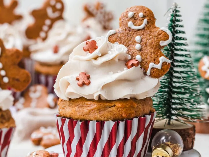 Soft, spiced vegan cupcakes with a hidden caramel center and fluffy oat cream frosting. Warm gingerbread flavors from cinnamon, ginger, and mixed spice, balanced with coconut sugar and applesauce for moisture. The chia seed gel replaces eggs while oat whipping cream provides a dairy-free topping. Topped with mini gingerbread cookies and sprinkles. Perfect for afternoon tea, dessert gatherings, or gifting. This version combines whole-food binders and plant-based ingredients without sacrificing the tender crumb and indulgent caramel surprise that makes gingerbread special.