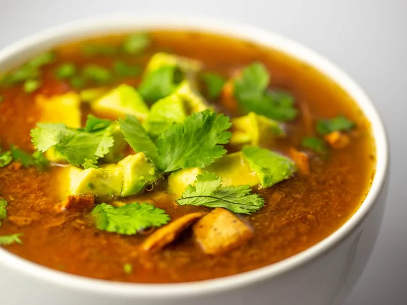 A low-carb, plant-based soup that reimagines tortilla soup using shredded jackfruit for meaty texture and shirataki rice to keep carbs minimal. This dish combines warm vegetable broth simmered with diced tomatoes, garlic, cumin, and smoked paprika for classic Mexican-inspired flavor without meat or grains. The jackfruit provides substantial, pulled-meat-like texture while remaining entirely vegan and keto-friendly. Perfect for anyone eating plant-based, following ketogenic diets, or seeking comforting soup with bold spice. Serve hot as a light lunch or dinner starter, topped with cilantro, diced avocado, vegan cheese, or cauliflower crackers for added crunch and richness. This version prioritizes accessibility by using pantry staples like canned jackfruit and tomatoes while delivering authentic tortilla soup character through spicing and layered vegetable base.