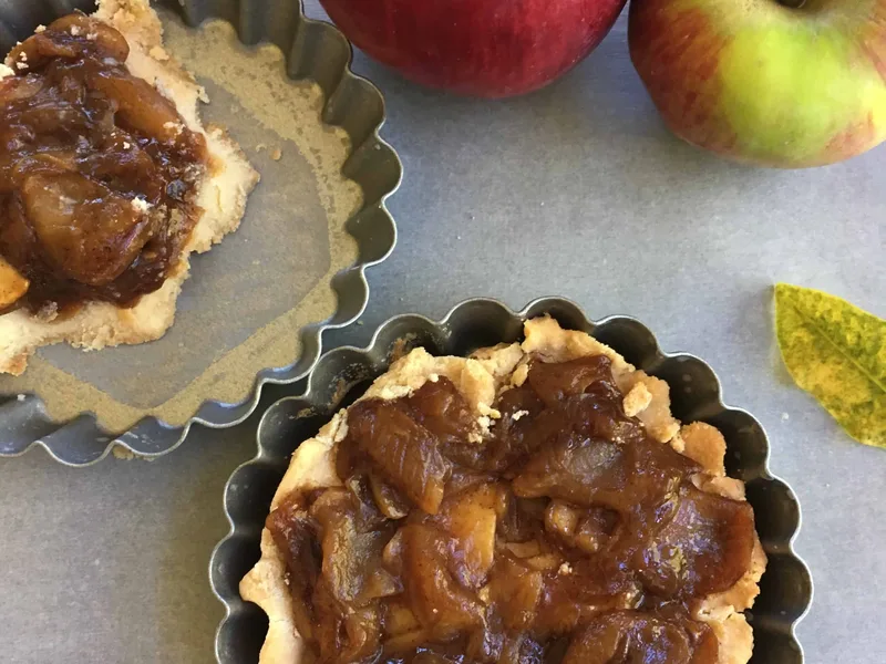 Prepare dough up to 1 day ahead and refrigerate. Bake crusts up to 8 hours ahead. Prepare apple filling up to 4 hours ahead and reheat gently before adding to crusts and final baking.