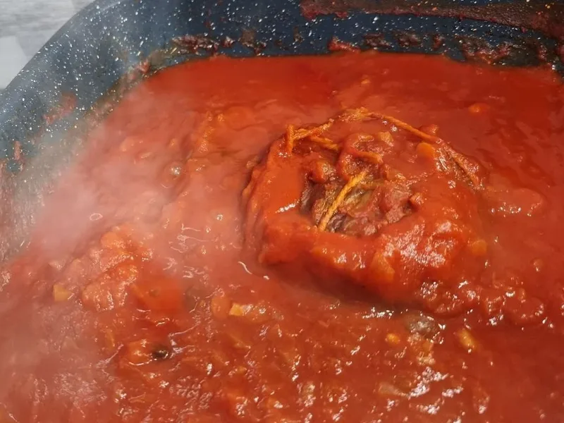 Slow-simmered Neapolitan-style vegan ragu built on a sofrito base with a showstopping portobello mushroom parcels stuffed with pine nuts, vegan cheese, and sultanas. Wine and tomato create a deep, savory sauce that works with pasta or any dish needing rich tomato depth. Two-hour simmer develops complex flavor.