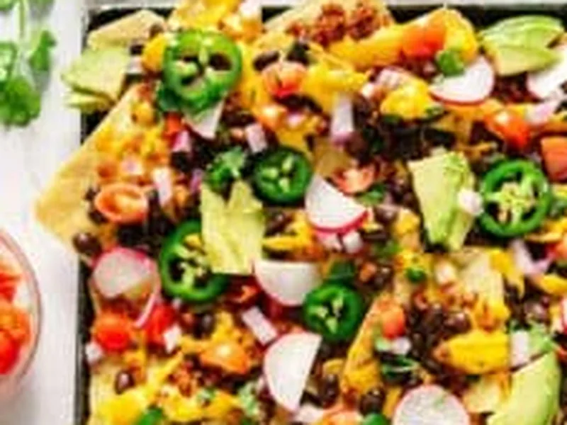 Crispy tortilla chips topped with vegan nacho cheese, seasoned walnut crumbles, black beans, and fresh garnishes. Load the pan with vibrant vegetables, avocado, cilantro, and jalapeños for a customizable vegan appetizer or casual meal that comes together in under 30 minutes.