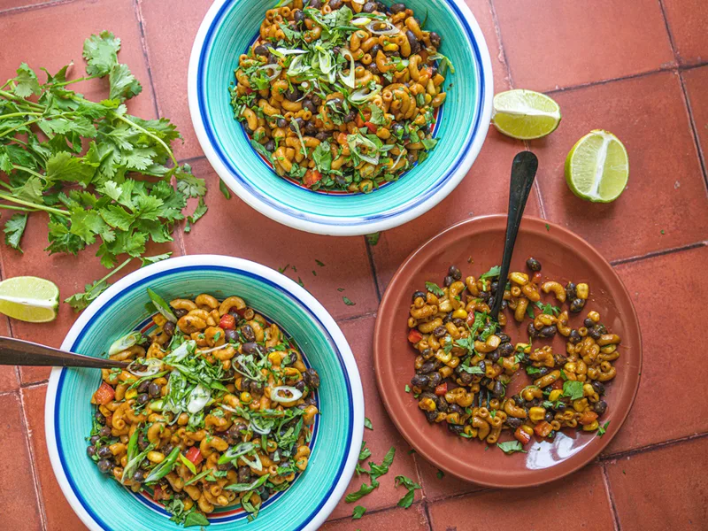 This vibrant vegan take on classic mac and cheese swaps dairy for plant-based butter and milk while layering in bold Southwest flavors. Black beans, corn, and roasted red bell pepper transform a simple boxed pasta into a hearty, protein-packed main that's naturally vegan and ready in under 20 minutes. The fajita seasoning adds warmth and subtle spice without overpowering the creamy sauce, while fresh cilantro and scallions brighten each bite. Perfect for weeknight dinners when you need something satisfying but minimal-effort, this dish appeals to vegans, busy home cooks, and anyone craving comfort food with an edge. Serve it as a standalone meal or alongside a simple salad. What sets this version apart is how it respects the boxed mac foundation while it with whole vegetables and legumes for texture and nutrition.
