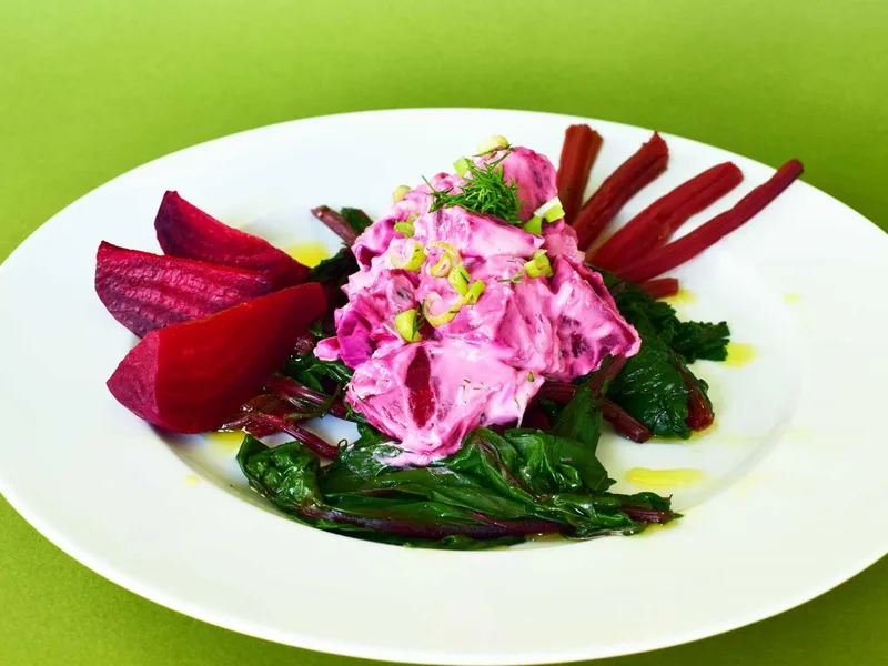 This warm beet salad celebrates the whole plant, using roots, stems, and leaves in a single vibrant dish. Tender beets are boiled until soft, then tossed while still warm with their own stems and leafy greens, creating layers of earthy sweetness and subtle bitterness. The creamy yogurt dressing—brightened with lemon juice and olive oil—cuts through the richness beautifully. Fresh dill, garlic, and spring onions add sharpness and aroma. Perfect for those seeking vegetable-forward meals with minimal fuss, this salad works as a light lunch, side dish, or starter. The warm-to-room-temperature serving method allows flavors to meld gently. What sets this version apart is its use of the entire beet plant rather than just the root, minimizing waste while delivering complex flavor and texture contrasts.