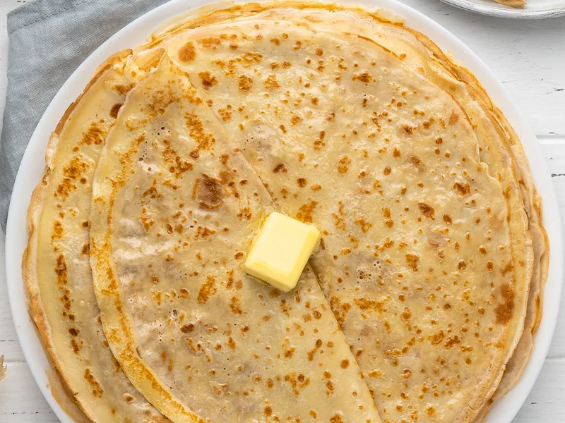 Keep finished crepes warm by covering with a clean kitchen towel or placing in a 200F oven while making the rest