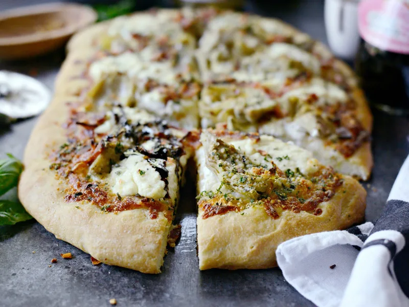 White Pizza with Bacon, Artichokes and Balsamic