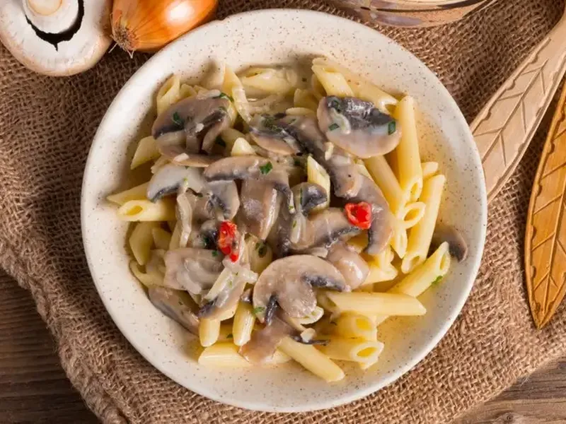 Whole grain penne pasta combines with a fresh, light sauce of sautéed mushrooms, cherry tomatoes, and sour cream for a simple yet satisfying vegetarian meal. The earthy nuttiness of whole wheat pasta contrasts beautifully with bright, tangy tomatoes and umami-rich mushrooms, while sour cream adds creamy richness without heaviness. Fresh parsley and shallots provide aromatic depth. This dish appeals to health-conscious home cooks seeking whole grain alternatives and quick weeknight dinners. Serve as a light lunch or dinner, particularly in spring and summer when cherry tomatoes are at their peak. This version prioritizes fresh ingredients and minimal cooking time, avoiding heavy cream or complex techniques while maintaining full flavor through proper sautéing and seasoning.