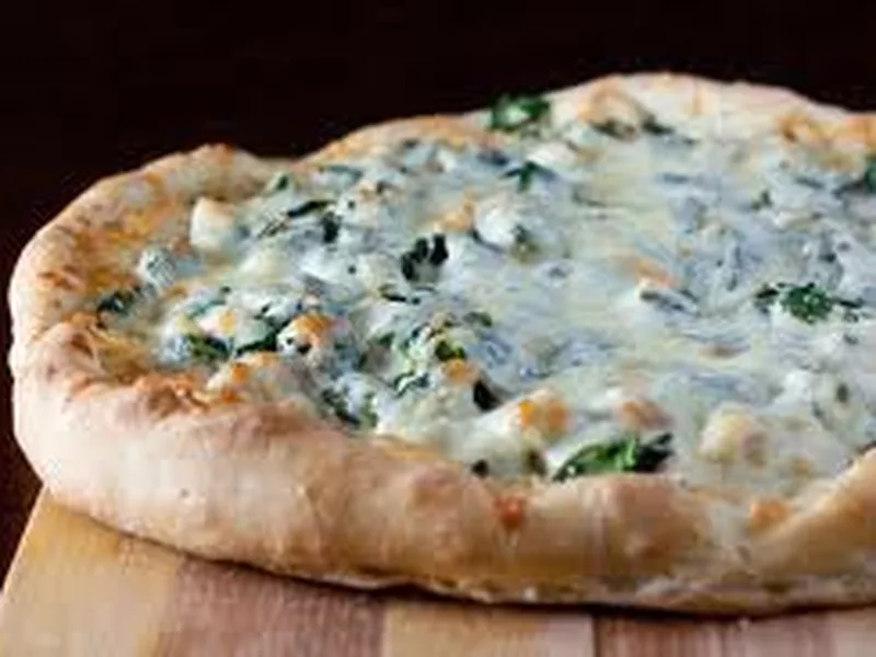 Herb pizza dough topped with a creamy Hidden Valley ranch and Greek yogurt base, seasoned chicken tenders, sauteed mushrooms and spinach, finished with mozzarella and parmesan. This version swaps traditional cream for tangy Greek yogurt to cut fat while maintaining the iconic ranch flavor profile. Serve for casual weeknight dinners or game day gatherings. The homemade ranch base a convenience ingredient into something fresher than pre-made ranch dressing.